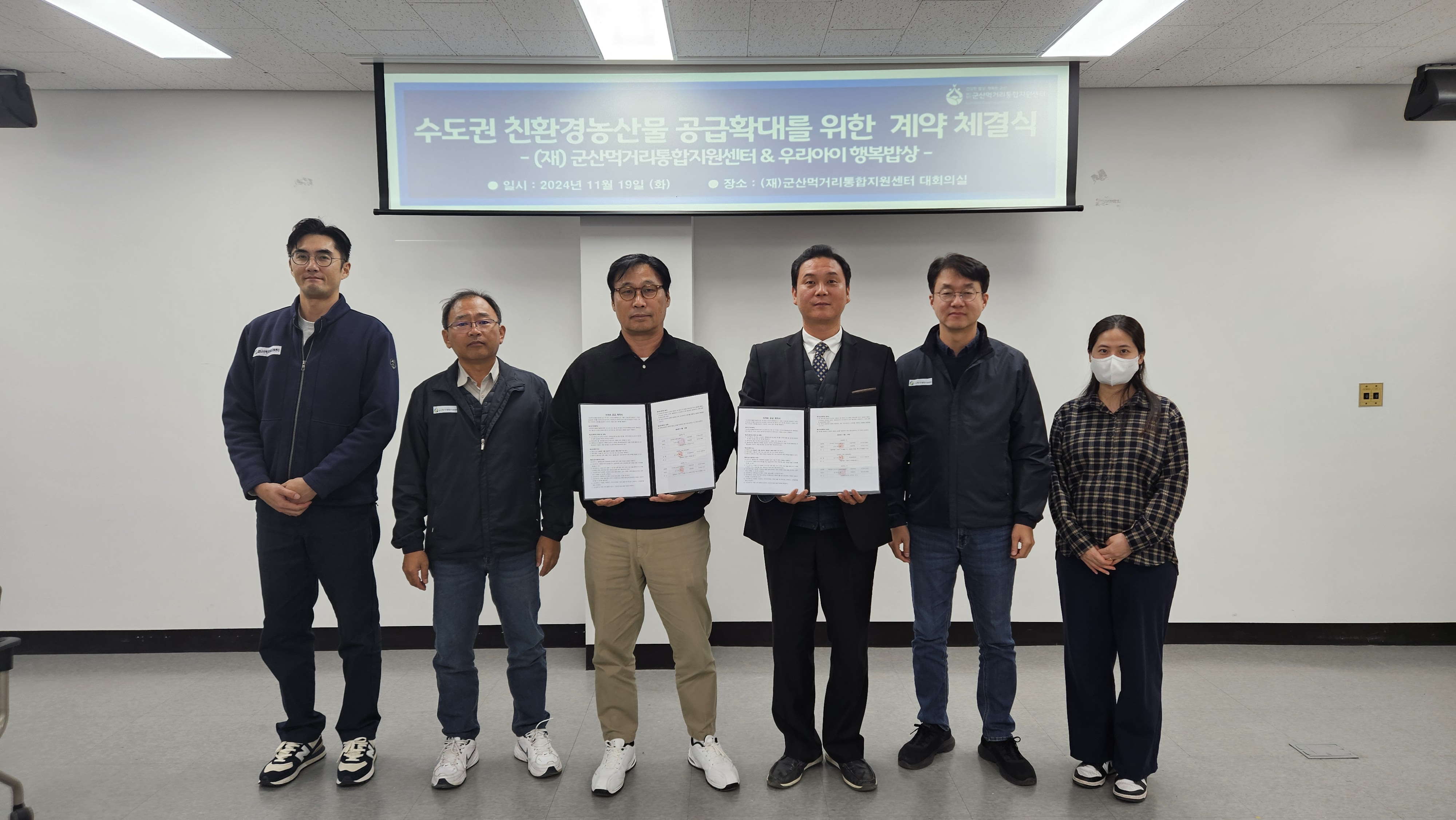 전북 군산시 군산먹거리통합지원센터가 지난 19일 주식회사 우리아이행복밥상(이하 행복밥상)과 도농상생 공공급식 사업의 가치를 지속적으로 이어가기 위한 계약을 체결했다.